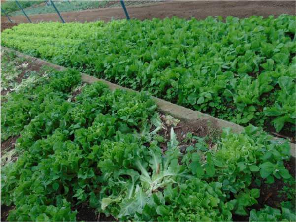 Cléber Pinsetta, responsável pela horta há duas décadas, diz que são plantadas mais de 1.000 mudas por mês. As hortaliças são variadas: tem escarola, repolho, couve, beterraba, alface, mandioca, quiabo e cenoura.