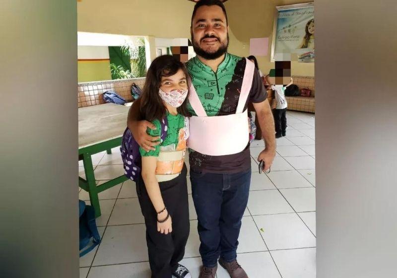 Professor não é gente, é anjo! Para combater o bullying que a aluna estava sofrendo, o professor de história Deniro Machado improvisou um colete igual ao que ela está usando para tratamento de escoliose – doença que causa um desvio lateral da coluna.