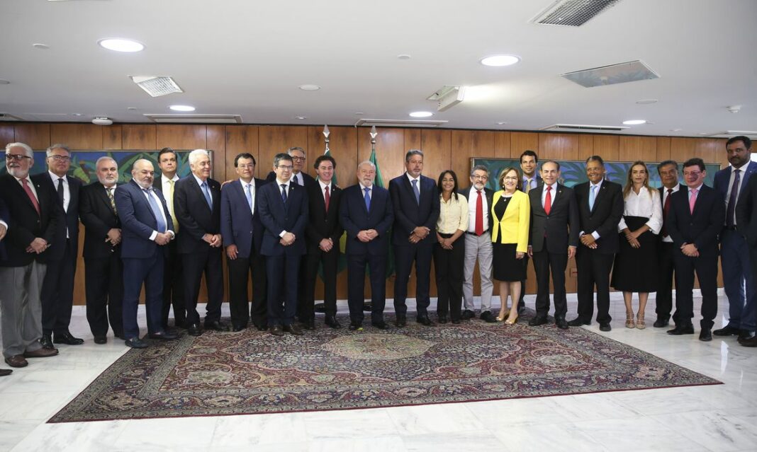 O presidente da República Luiz Inácio Lula da Silva recebeu nesta quarta-feira (11) no Palácio do Planalto um grupo de parlamentares, o presidente da Câmara dos Deputados, Arthur Lira (PP), e o primeiro vice-presidente do Senado, Veneziano Vital do Rego (MDB), que fizeram a entrega simbólica do decreto de intervenção na área da segurança pública no Distrito Federal.