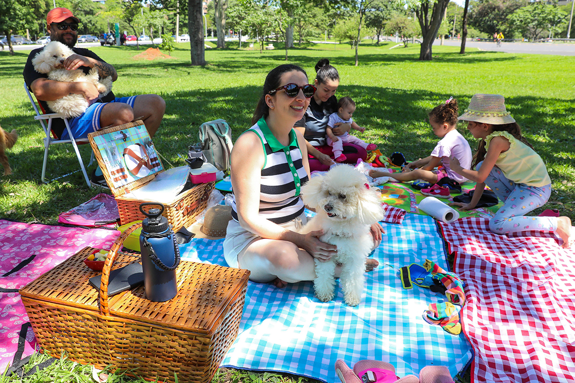 A nutricionista Thyelle Loriato, 41, foi com a família inteira, incluindo as três cachorras. Ela conta que adora fazer piqueniques e que a família estabeleceu a meta de conhecer e aproveitar mais os espaços públicos de Brasília. “É um local em que a gente pode trazer as cachorras, porque ficamos muito limitados. Temos três, e a maioria dos lugares que aceitam pet permite só um. Aqui dá para vir todo mundo”, explica.