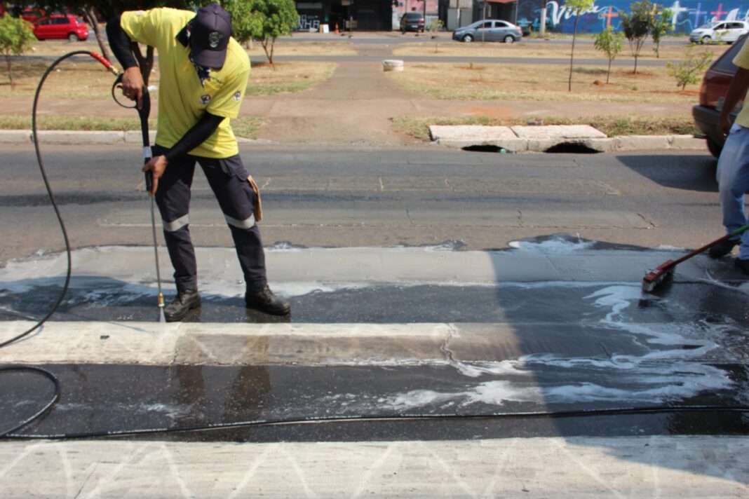 Até agora, 201 faixas já foram lavadas pelo Detran e o Programa de Lavagem de Faixas está em andamento nas vias urbanas do DF.