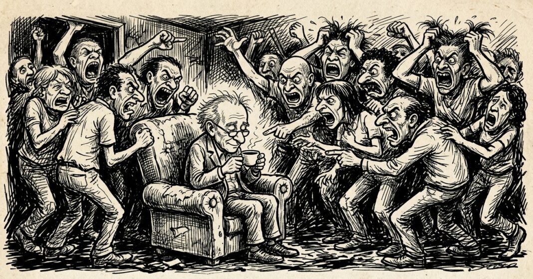 III. A ofensa e seu verdadeiro dono – Uma palavra dura tem o peso que você decide dar a ela. Nem mais, nem menos. Epicteto, com a economia de quem não tem paciência para rodeios, avisou: quando alguém te ofende, lembra que é a opinião dele, não a verdade. A ofensa sai da boca de quem está cheio das próprias dores, limitações e histórias mal resolvidas. Chega até você como um objeto perdido: só se torna seu se você pegar.
