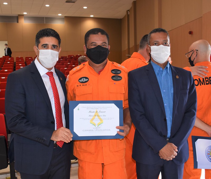 Nesta terça-feira (18), o deputado Roosevelt Vilela homenageou os militares do Corpo de Bombeiros Militar do Distrito Federal que participaram da Operação Pantanal, no Estado do Mato Grosso do Sul, nos anos de 2019 e 2020. O parlamentar fez a entrega da Moção de Louvor, que é uma proposição em que a Câmara Legislativa do DF se manifesta para reconhecer as pessoas da sociedade que prestaram relevantes serviços à população. A solenidade aconteceu no auditório Coronel José Nilton Matos, na Academia de Bombeiro Militar.