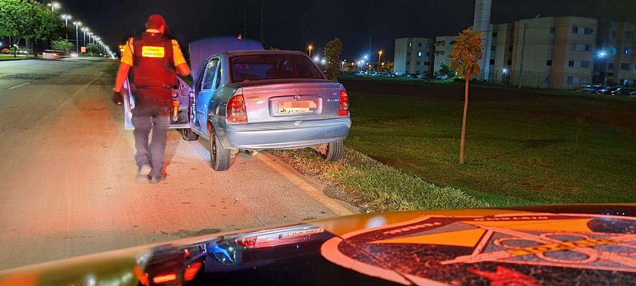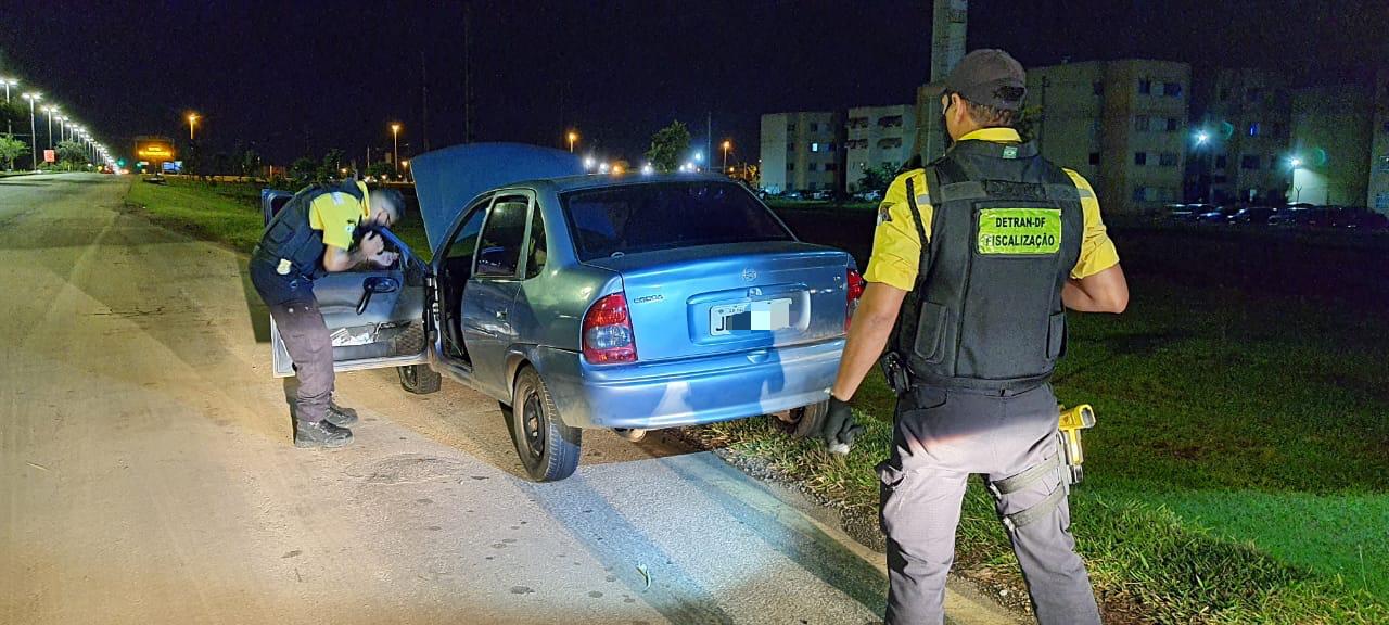 Por volta das 1h30 dessa terça-feira (13), durante patrulhamento após a Operação Blitz Toque de Recolher, no Riacho Fundo II, as equipes de fiscalização do Departamento de Trânsito do Distrito Federal (Detran-DF) avistaram um veículo, modelo GM Classic, abandonado no leito da DF-001, na altura do Condomínio Parque Riacho Fundo.