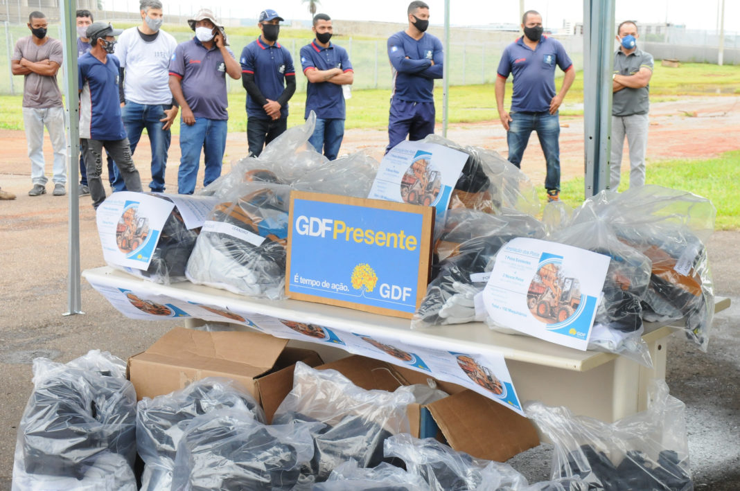 Durante o evento desta manhã, kits com itens essenciais para a segurança dos trabalhadores foram entregues, simbolicamente, aos coordenadores dos polos. O material – luvas, óculos de proteção, cantil, botas -, será repassado ao pessoal que, dia a dia, sol a sol, dá o suor e esforço para entregar a cidade limpa, bem arrumada e linda para a comunidade. Uma média de 300 pessoas trabalham, diariamente, nas ações do GDF Presente, entre gente do próprio programa, servidores das RAs, reeducandos da Fundação de Amparo ao Trabalhador Preso (Funap) e terceirizados.