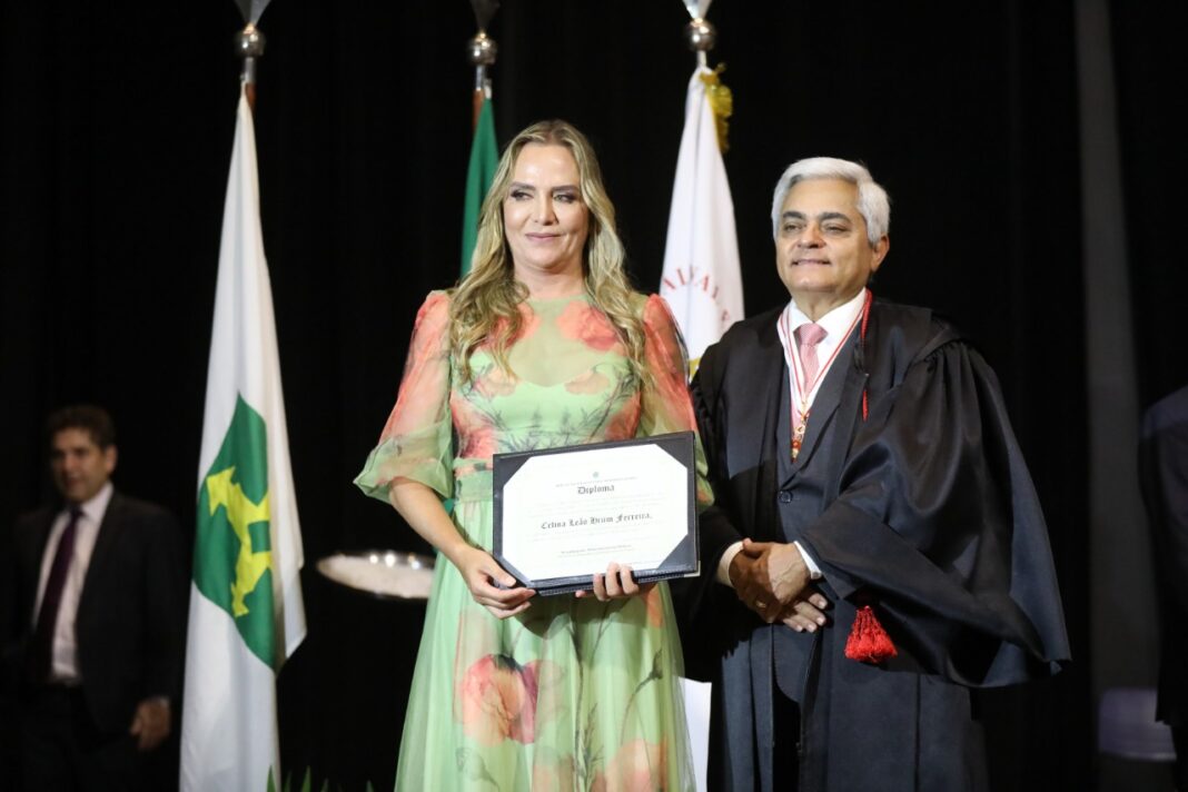 Reeleito para o cargo de governador, Ibaneis Rocha foi diplomado em cerimônia promovida pelo Tribunal Regional Eleitoral do Distrito Federal (TRE-DF), junto à deputada federal e vice-governadora eleita Celina Leão.