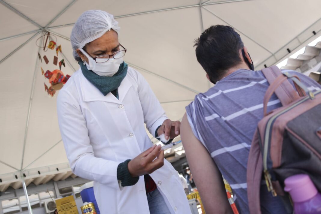 A cobertura vacinal no DF chegou a 56,74% com a primeira dose ou dose única na população com 18 anos ou mais. Com a dose de reforço ou única essa cobertura chegou a 21,86%.