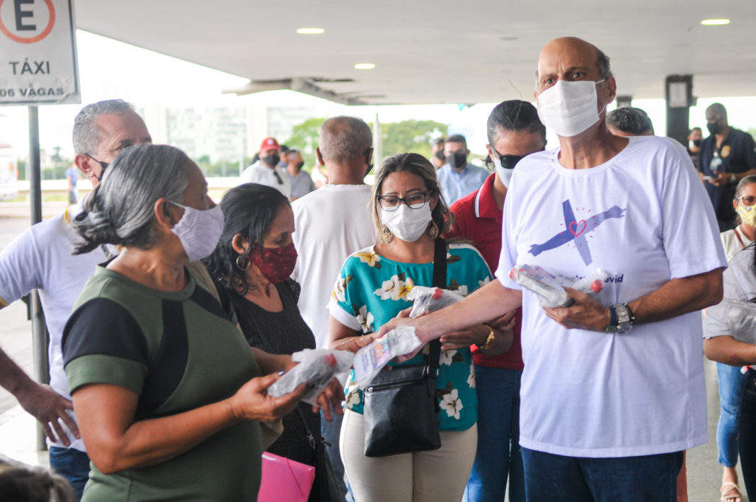 Coordenado pelo vice-governador Paco Britto, o comitê Todos Contra a Covid tem intensificado as ações. Na tarde desta terça-feira (26), mais de 5 mil kits com máscaras e álcool em gel foram distribuídos na Rodoviária do Plano Piloto. A ação, além de alertar a população sobre os riscos do vírus que ainda circula no Distrito Federal, buscou reforçar a consciência de quem passava pelo local sobre a importância do uso de máscaras, da higienização das mãos e das regras de distanciamento social.