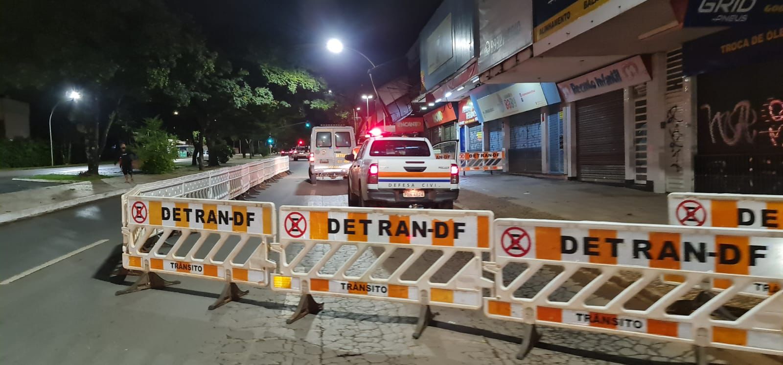 Na noite desta quarta-feira (2), agentes de trânsito do Detran-DF, em patrulhamento, observaram o risco de queda do banner da fachada de uma loja na 510 Sul e acionou a Defesa Civil, que recomendou o bloqueio de parte da via para evitar acidentes.