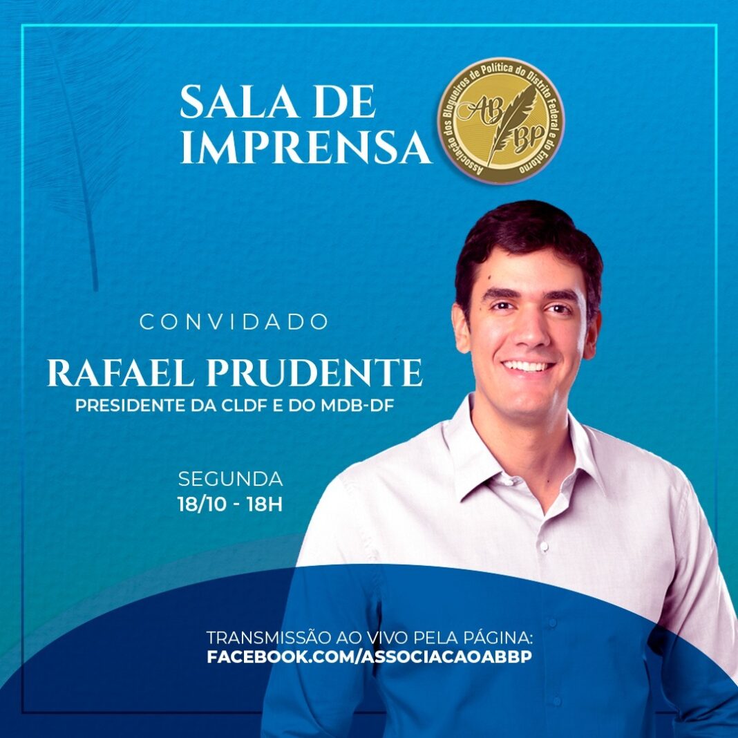 Um dos parlamentares mais jovens a comandar uma casa legislativa estadual no País, o deputado Rafael Prudente, do MDB, é o convidado da próxima edição do projeto de entrevistas coletivas “Sala de Imprensa ABBP”, na segunda-feira (18), às 18h.