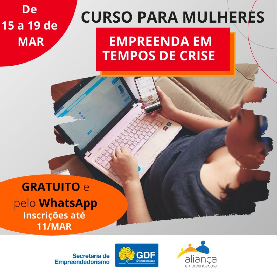 Com 250 vagas disponíveis para mulheres empreendedoras, o curso acontecerá entre os dias 15 a 19 de março, via WhatsApp, sendo 50 vagas para cada uma das seguintes regiões administrativas: Taguatinga, Santa Maria, Samambaia e Gama, e mais 50 para as demais regiões do Distrito Federal.