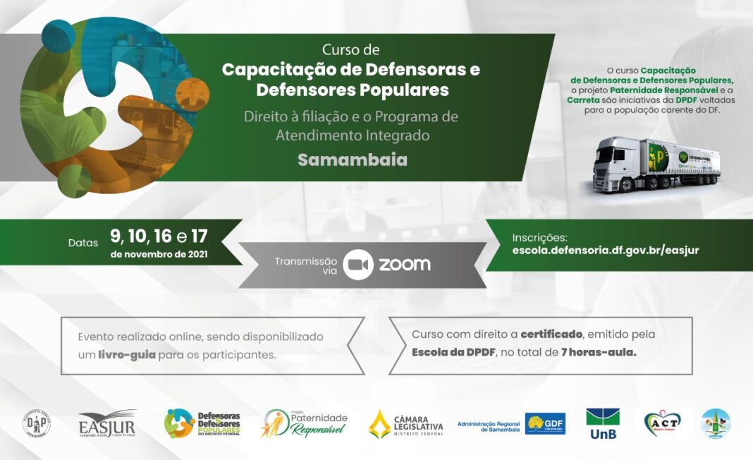 A capacitação, que será realizada conjuntamente com o Projeto Direito à filiação e o Programa de Atendimento Integrado, voltada para o público da cidade Samambaia, será on-line e contará com a participação de Defensores Públicos, como a Defensora Pública-Geral Maria de Nápolis, professores da Universidade de Brasília e entidades parceiras.