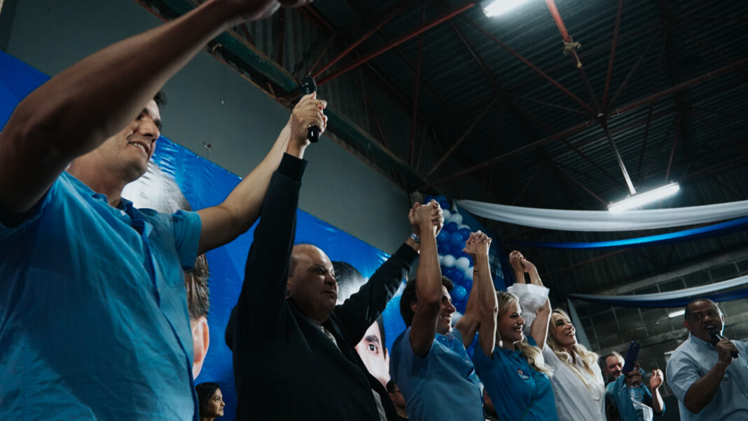 Governador compareceu ao ato na noite deste sábado (23) e encorajou a tentativa do ex-parlamentar de retornar à CLDF