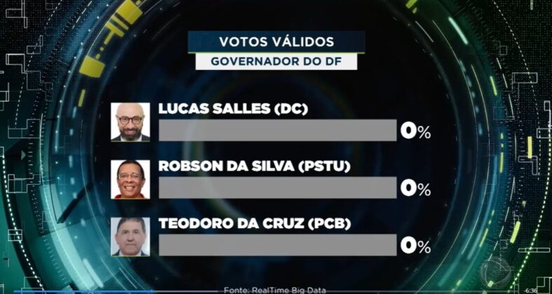 Renan Arruda (PCO), Keka Bagno (PSOL) e Coronel Moreno (PTB) empatam com 1%. Robson da Silva (PSTU), Lucas Salles (DC) e Teodoro da Cruz (PCB) não pontuaram.