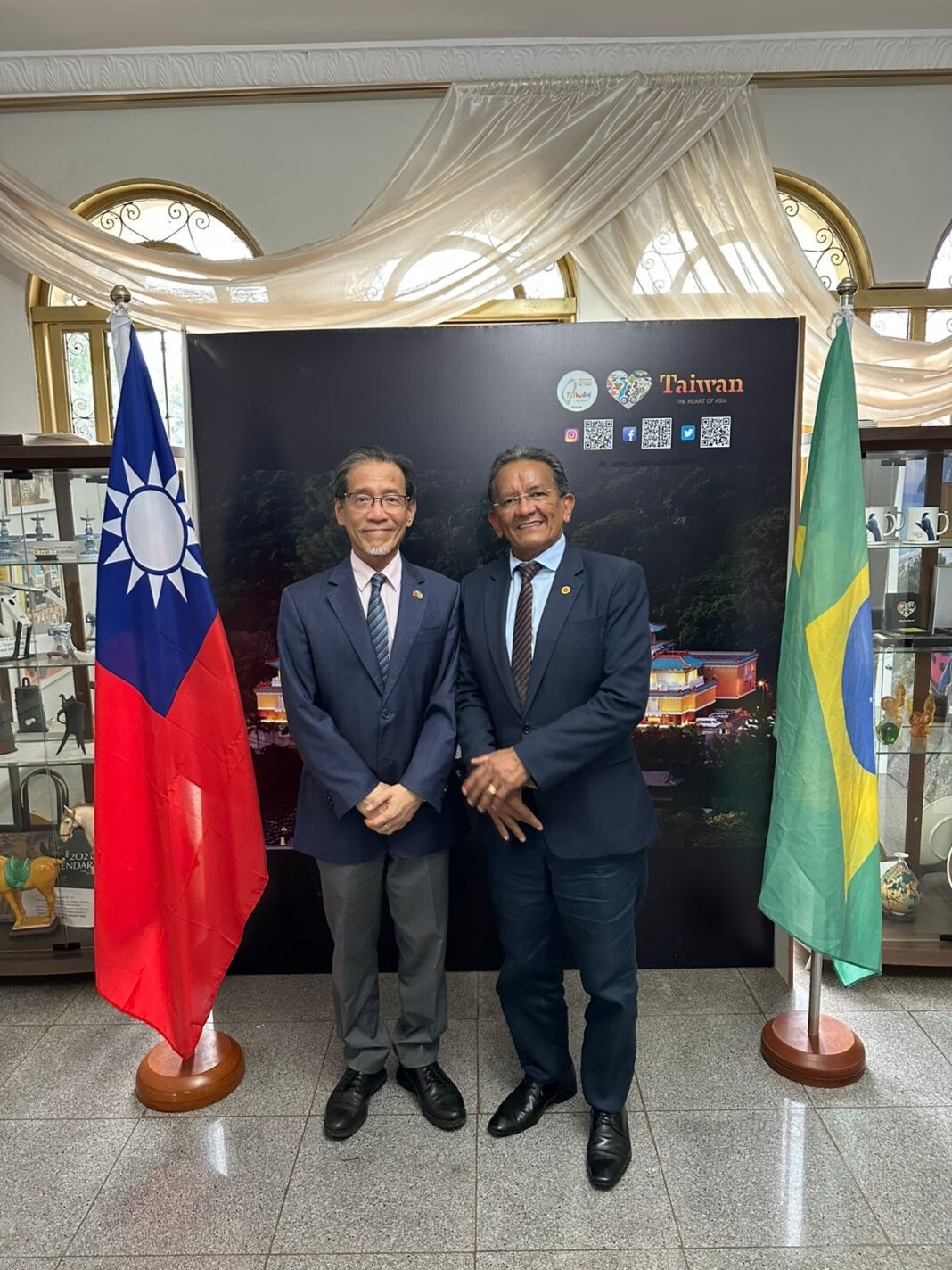 O representante do Escritório Econômico e Cultural de Taipei no Brasil, Benito Liao, recebeu nesta terça-feira (31) o jornalista Toni Duarte, presidente da Associação Brasileira de Portais de Notícias (ABBP), em visita à sede da representação, localizada no Lago Sul, na área das Embaixadas, em Brasília.