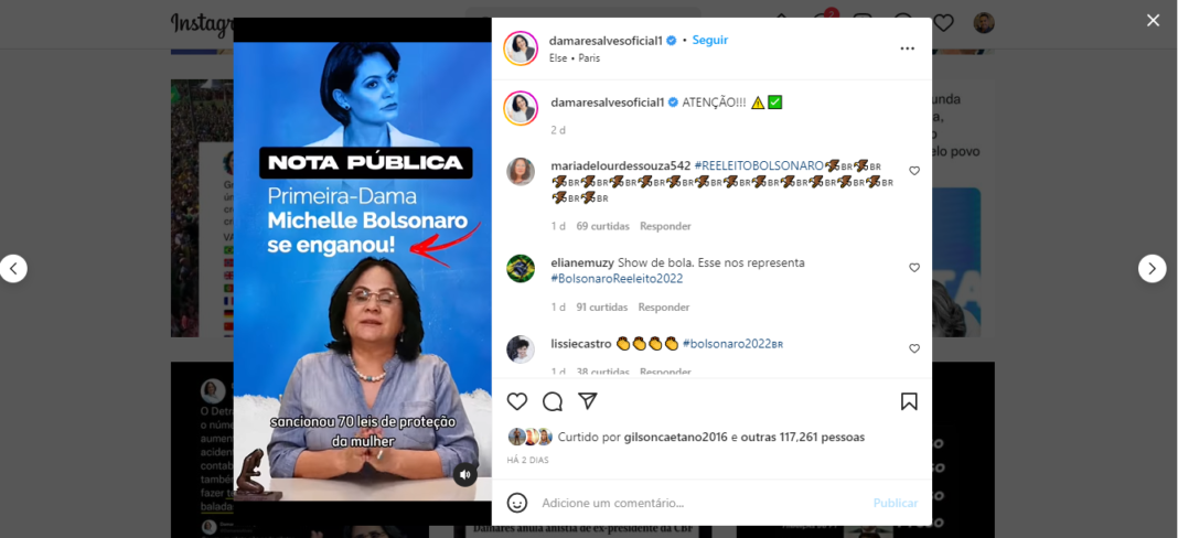 A ex-ministra da Mulher, Família e Direitos Humanos Damares Alves (Republicanos) fez uma “pegadinha” com a primeira-dama Michelle Bolsonaro.