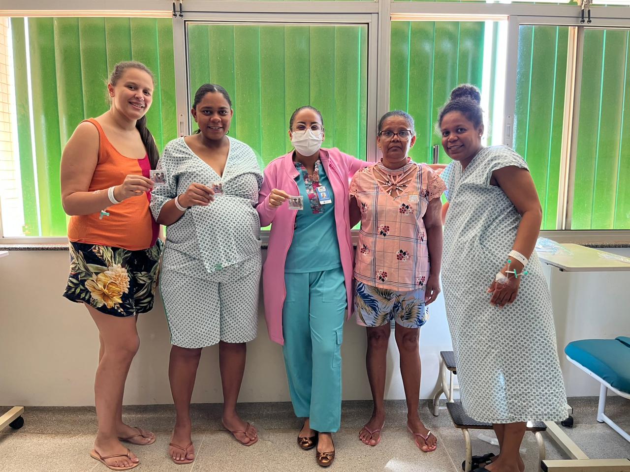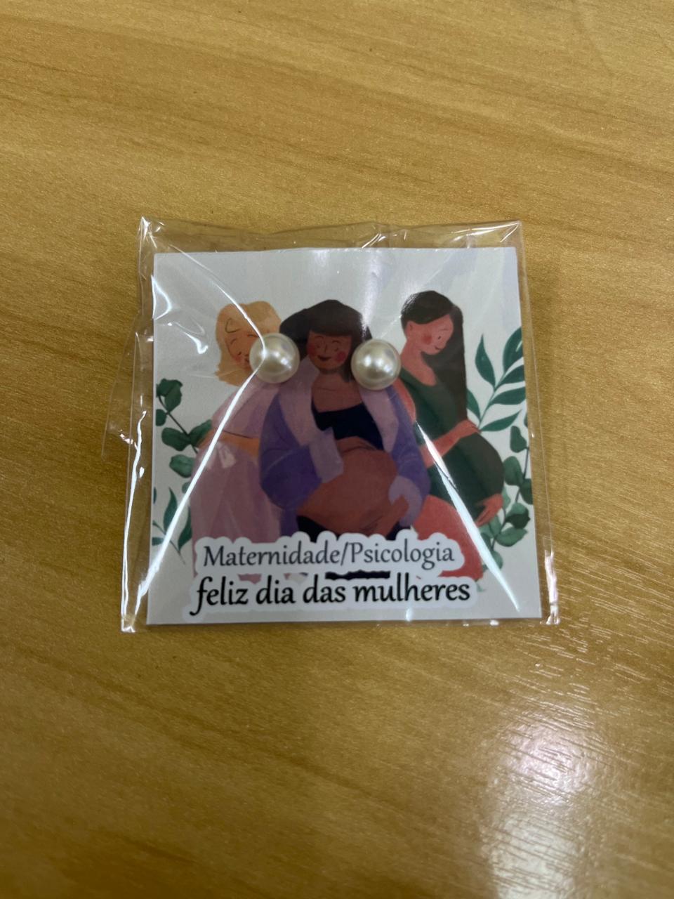 Para as gestantes consideradas de alto risco e internadas nas enfermarias da Maternidade, a equipe preparou um mimo especial: um par de brincos. A psicóloga Sheileni Louzeiro explica que a iniciativa visa estimular o autocuidado, para que as gestantes se percebam, se cuidem e se sintam cuidadas pela equipe.