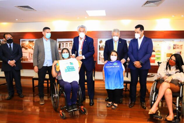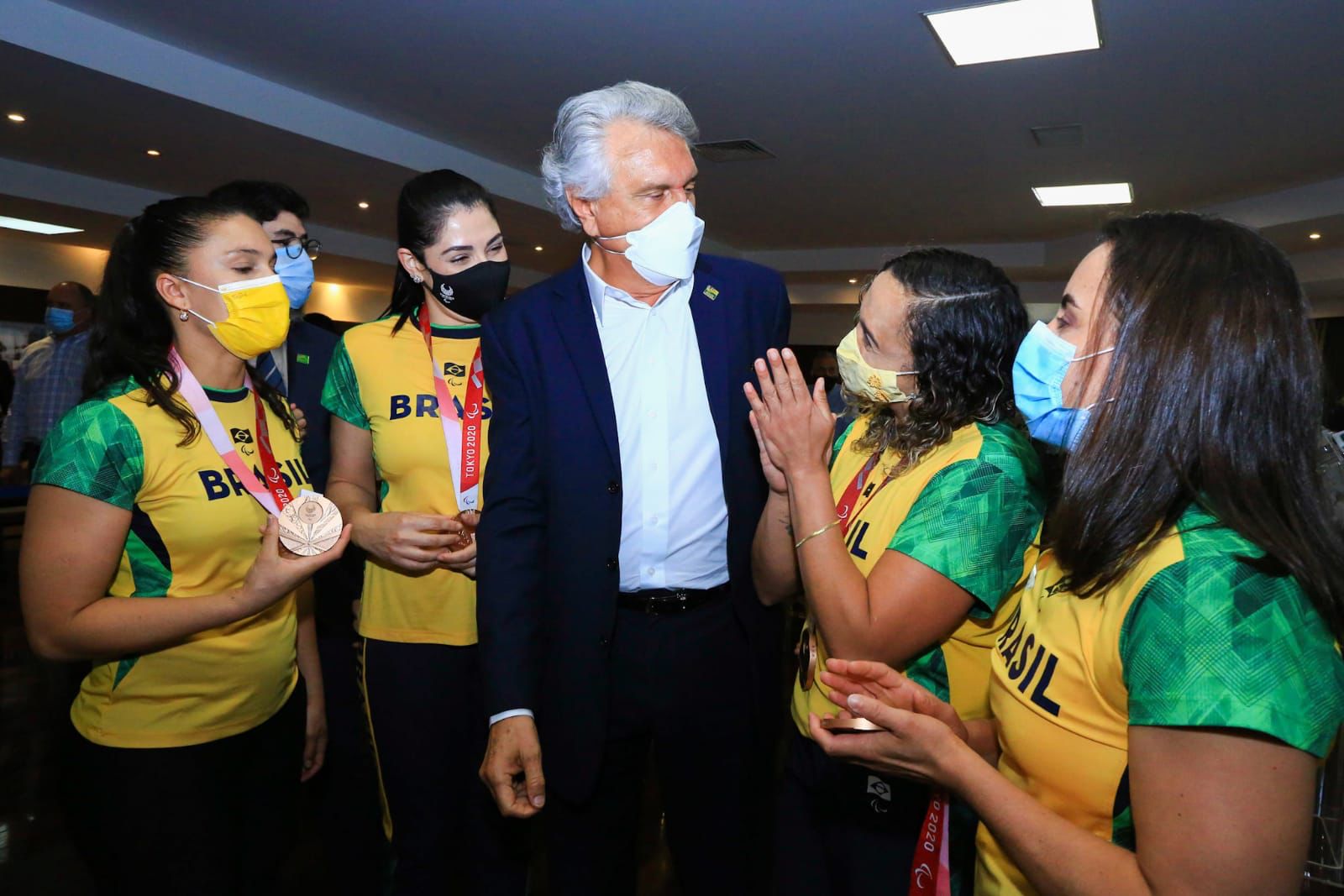 O governador Ronaldo Caiado recebeu, nesta terça-feira (14/09), no Palácio das Esmeraldas, atletas goianos que participaram dos Jogos Paralímpicos de Tóquio. Durante o evento, também entregou os uniformes que vão vestir 27 representantes do Estado nas Paralimpíadas Universitárias, que serão realizadas entre os dias 16 e 19 setembro, em São Paulo.