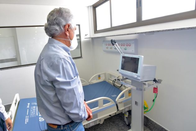O governador Ronaldo Caiado vistoriou a obra de construção do Hospital de enfrentamento à Covid-19 do Centro-Norte Goiano (HCN), em Uruaçu, na manhã deste domingo (28/02). A unidade será estruturada para ser referência na região para casos suspeitos e confirmados de infecção pelo coronavírus durante a pandemia, com capacidade para cerca de 200 leitos, sendo 68 de Unidades de Terapia Intensiva (UTIs) e 118 de enfermarias. “Será transformado em um hospital que vai dar suporte 100% ao tratamento e enfrentamento à Covid-19. Terá aqui não só uma estrutura diferenciada, como também toda uma equipe muito bem treinada, diante de um ano que nós já estamos convivendo, infelizmente, com esse vírus”, destacou Caiado.