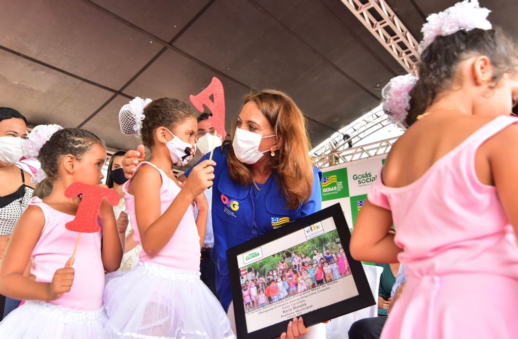 A coordenadora do Gabinete de Políticas Sociais (GPS) e presidente de honra da Organização das Voluntárias de Goiás (OVG), primeira-dama Gracinha Caiado, realizou a entrega de mais 527 cartões às beneficiárias do Programa Mães de Goiás, nesta quarta-feira (29/09). Dessa vez, o município contemplado foi Santa Terezinha de Goiás, no Norte goiano. A iniciativa integra a meta de contemplar 40 municípios em setembro, com um total de 11.760 cartões distribuídos. Somente nesta etapa o investimento do Governo de Goiás é de R$ 3 milhões. O benefício concedido é de R$ 250 mensais para custear itens básicos de alimentação e medicamentos para crianças até seis anos de idade.