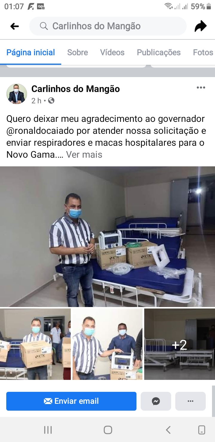 “Quero deixar meu agradecimento ao governador @ronaldocaiado por atender nossa solicitação e enviar respiradores e macas hospitalares para o Novo Gama,” disse