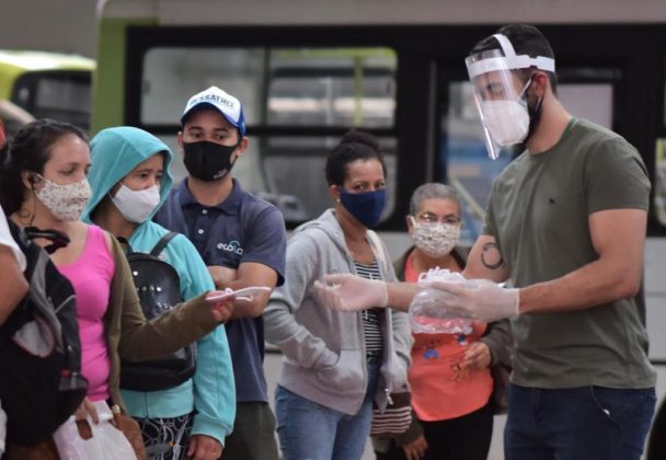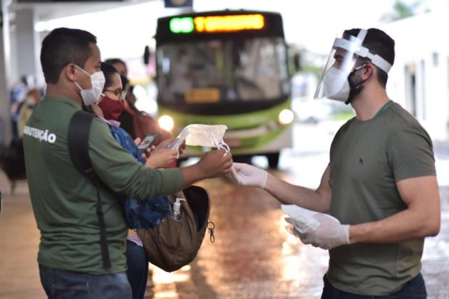 Usuários do transporte coletivo de Goiânia começaram a receber nesta sexta-feira (19/03) máscaras do modelo N95 como medida de proteção contra a disseminação do coronavírus. A iniciativa foi determinada pelo governador Ronaldo Caiado e pela presidente de honra da Organização das Voluntárias de Goiás (OVG) e coordenadora do Gabinete de Políticas Sociais (GPS), primeira-dama Gracinha Caiado. A medida faz parte da terceira etapa da Campanha de Combate à Propagação do Coronavírus. Com grande fluxo de pessoas que exercem atividades essenciais, o Terminal das Bandeiras, na região Sudoeste da capital, foi o primeiro local a receber a ação, que é realizada por meio da OVG e pelo GPS.