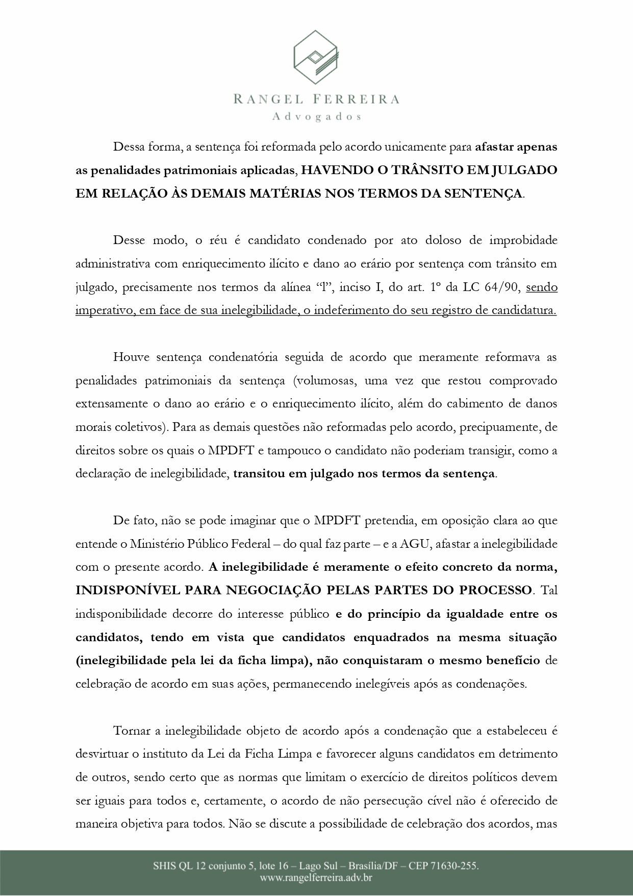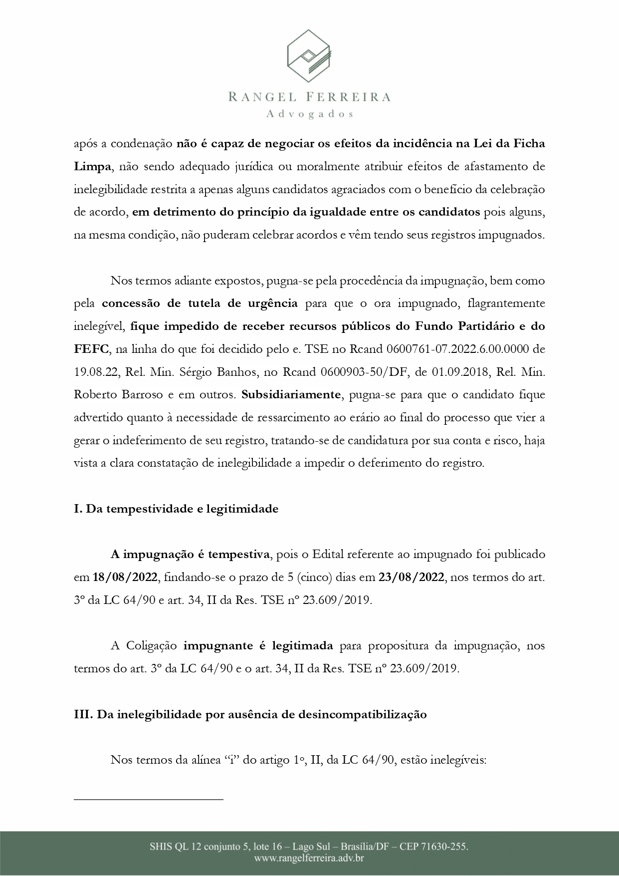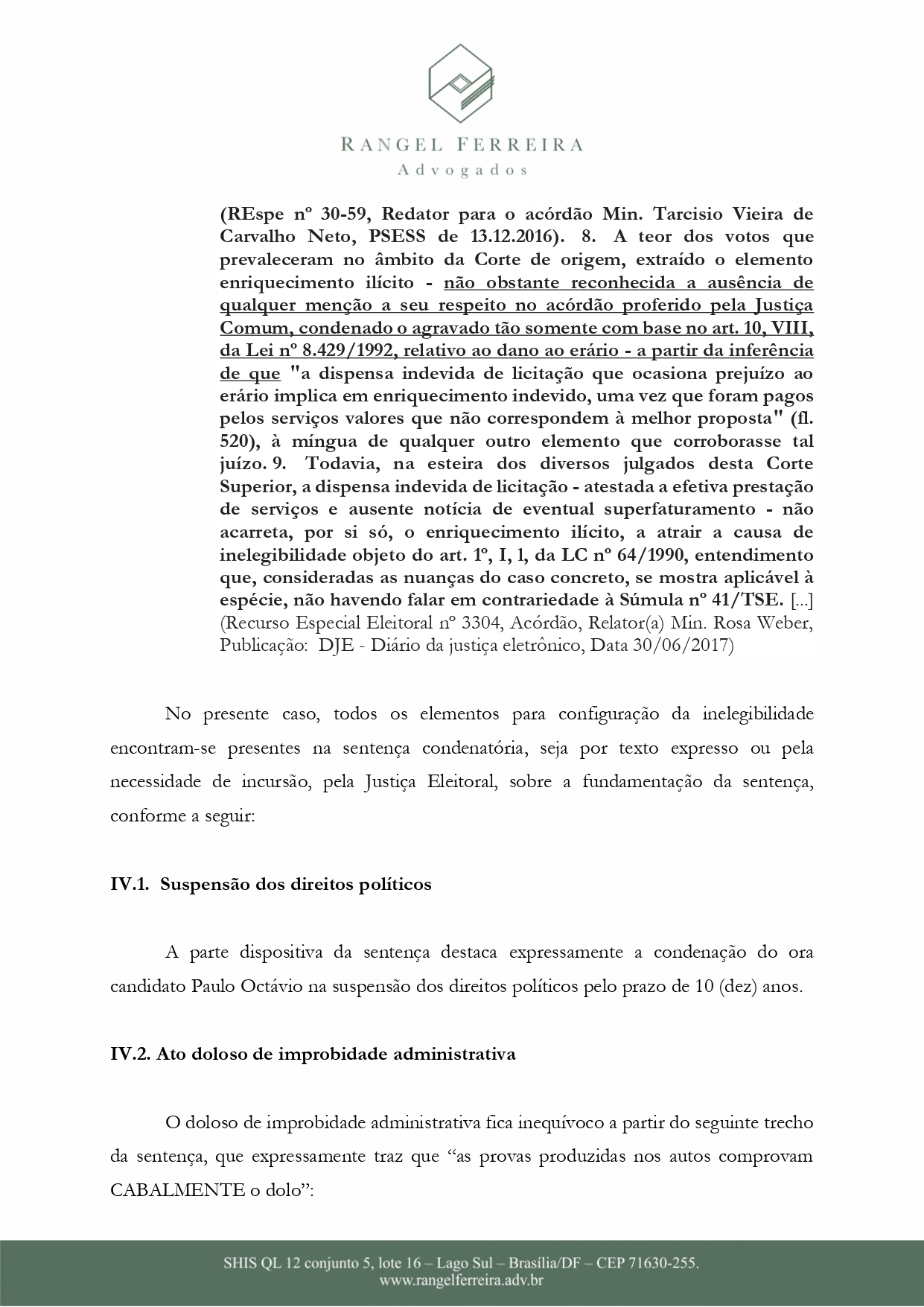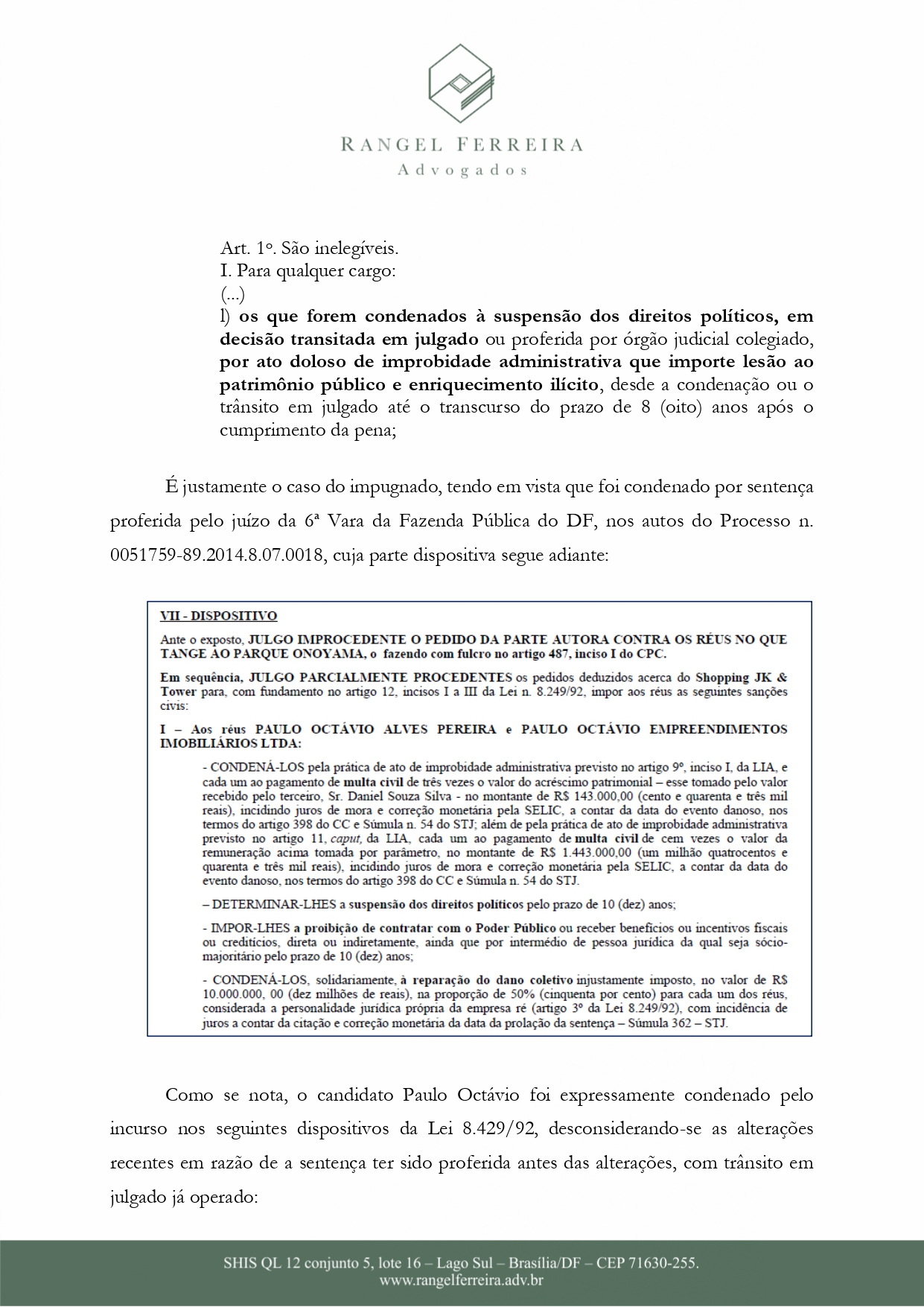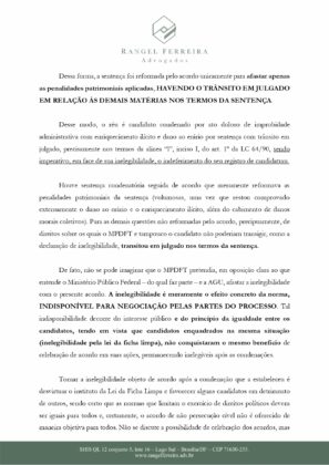 Ainda segundo o documento, P.O não estaria apto para prosseguir com a candidatura por não se adequar nas regras da Lei da Ficha Limpa.