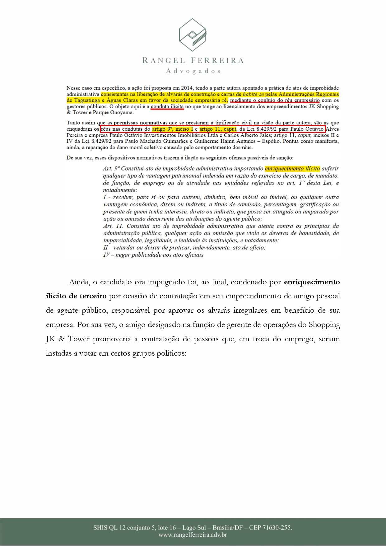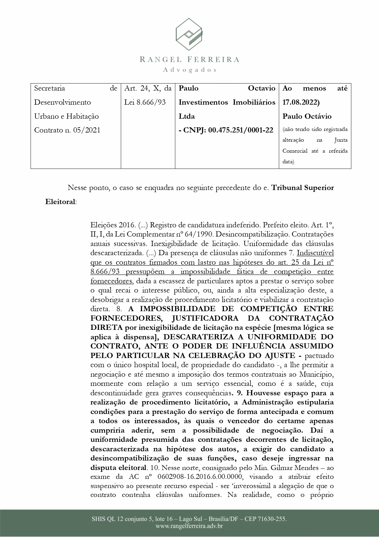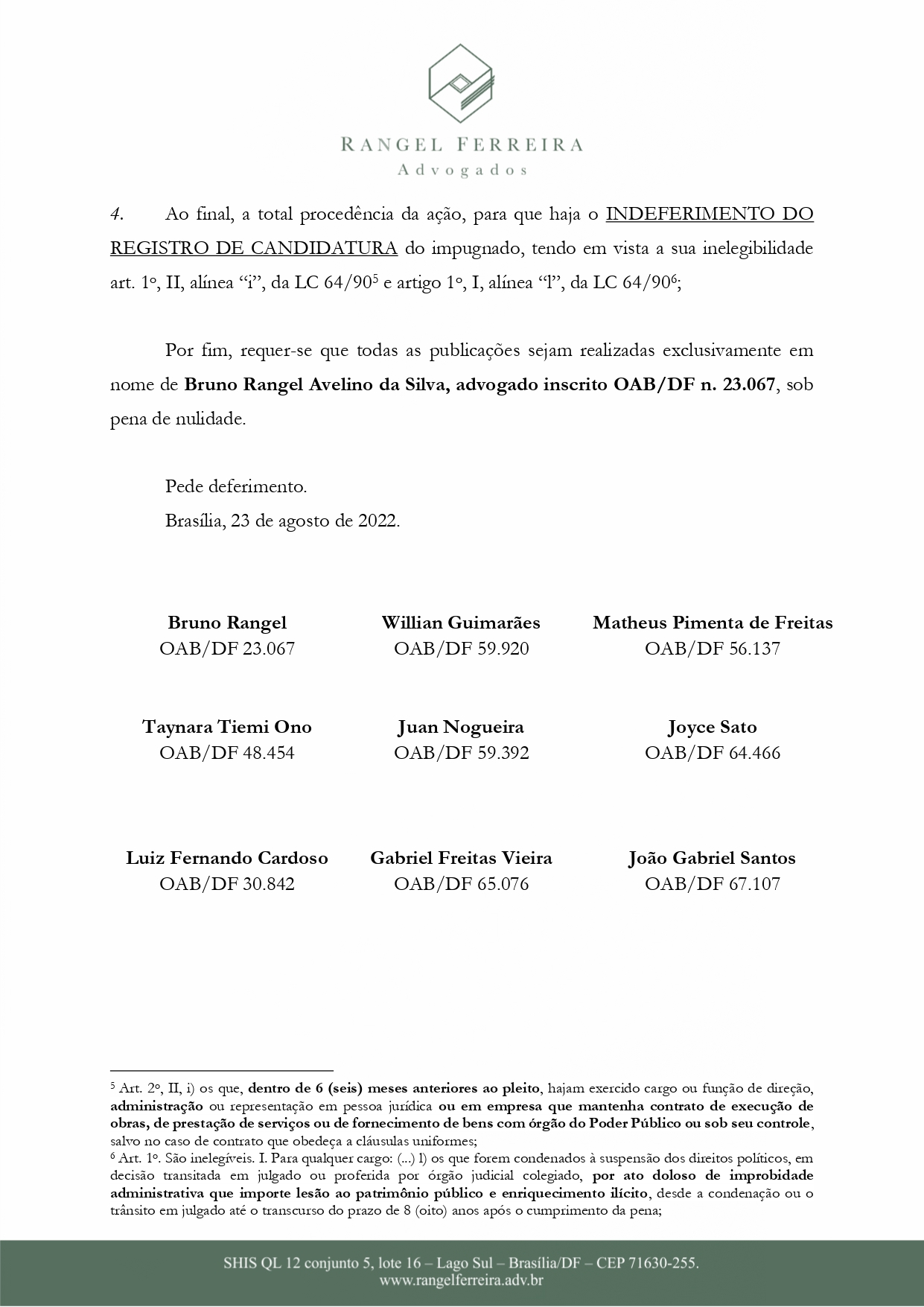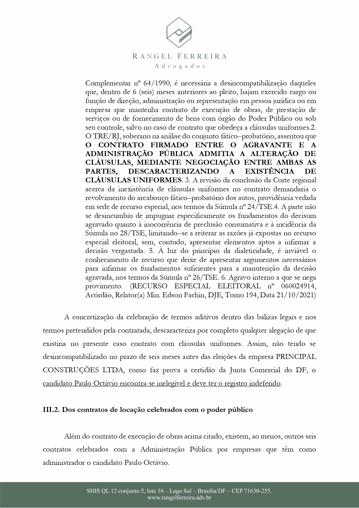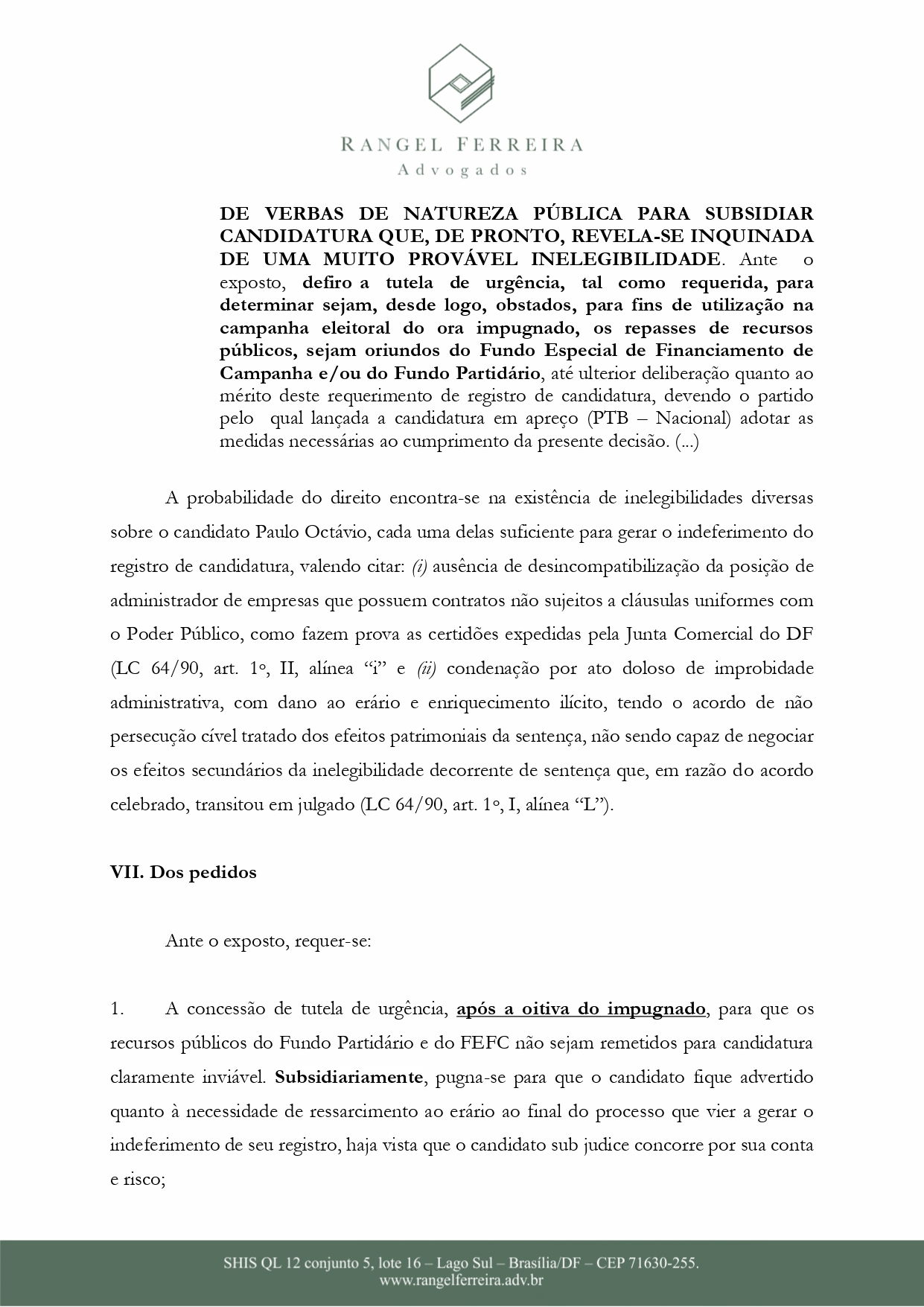 Ainda segundo o documento, P.O não estaria apto para prosseguir com a candidatura por não se adequar nas regras da Lei da Ficha Limpa.