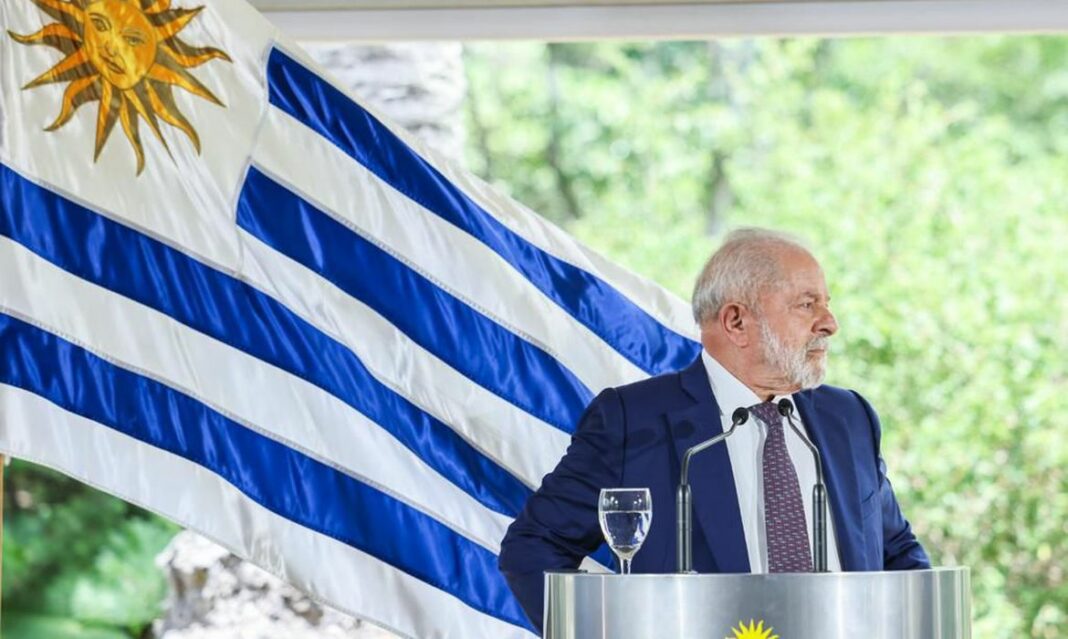Lula viajou nesta quarta-feira para Montevidéu, no Uruguai, onde se reuniu com o presidente do país, Luis Lacalle Pou. O objetivo da visita foi discutir o fortalecimento do Mercosul, diante das negociações avançadas entre Uruguai e China para o estabelecimento de um acordo comercial independente entre os dois países.