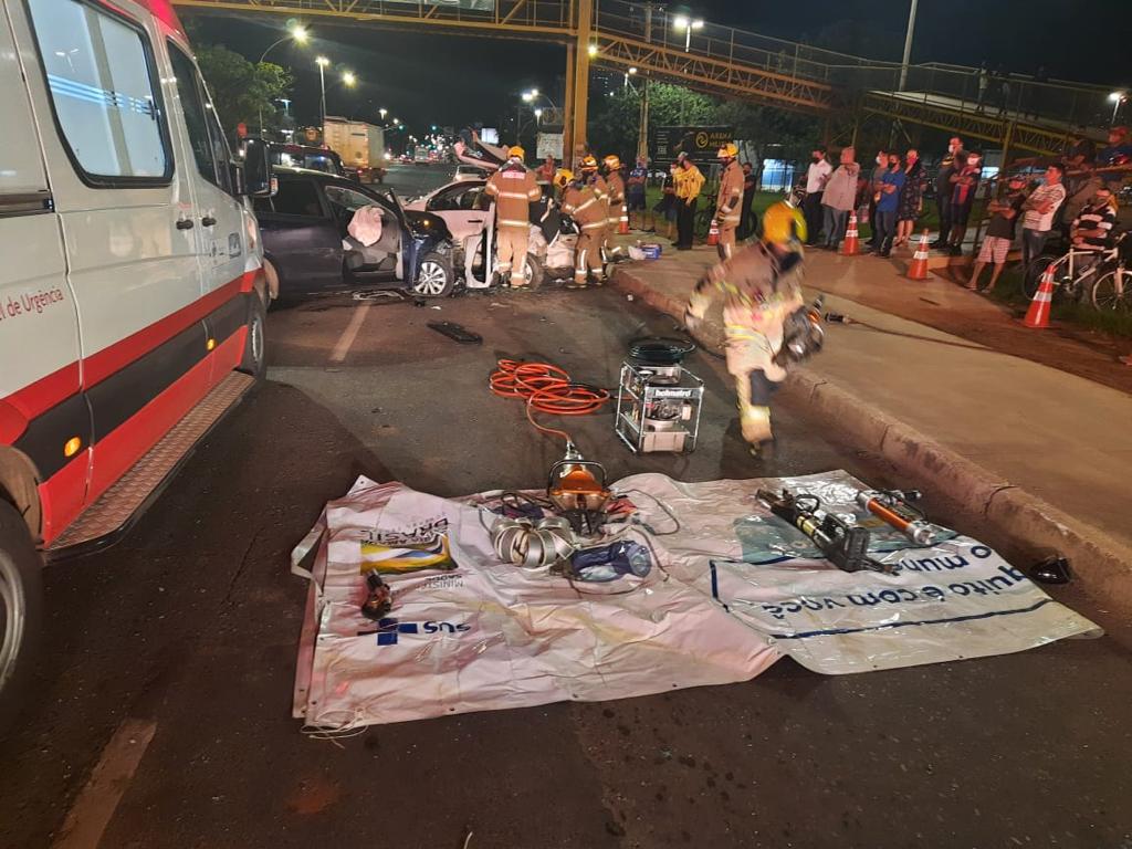 Agentes do Departamento de Trânsito do Distrito Federal (Detran-DF) atendem ocorrência de acidente na Avenida Hélio Prates, sentido Taguatinga. A condutora do veículo Virtus colidiu com dois veículos que estavam parados no semáforo.