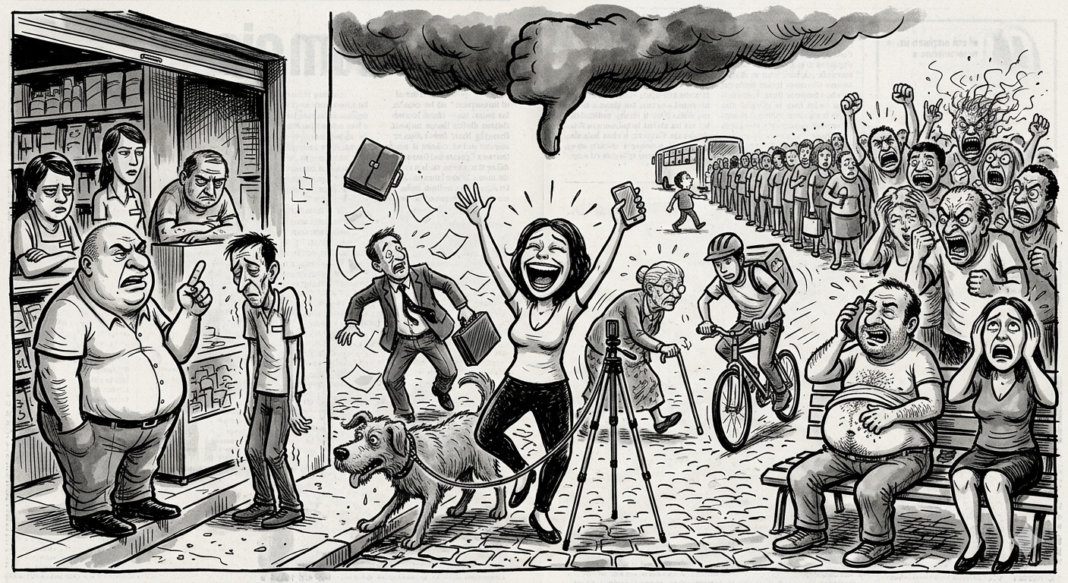 O furador de fila não está apenas furando uma fila. Está dizendo que o contrato não vale para ele. Que suas duas coisinhas têm mais peso que as compras dos outros. Que sua pressa é mais legítima que o tempo alheio. E, na inversão clássica do sem-noção, quem reclama é que vira o estressado, o mala, o problema. Ele é só uma pessoa comum. Com necessidades urgentes. Que o universo cruel insiste em atrasar.