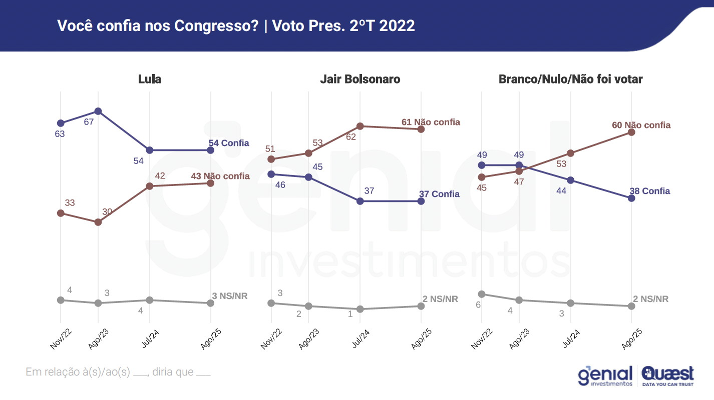 Em meio a um cenário de visões opostas, o Congresso Nacional alcançou a rara unanimidade de ser uma fonte de desconfiança para todos. Lulistas, bolsonaristas e até mesmo aqueles que se abstiveram no último pleito presidencial aumentaram sua percepção negativa sobre o Legislativo, consolidando-o como o denominador comum do desgaste político brasileiro.