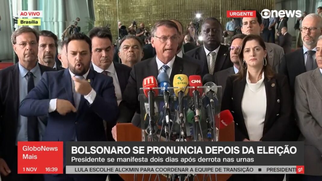 Em um discurso de cerca de dois minutos, ele não reconheceu a vitória de Luiz Inácio Lula da Silva (PT) e agradeceu os votos recebidos. Sobre os bloqueios de caminhoneiros em estradas de todo o país que acontecem desde a noite de domingo, Bolsonaro criticou atos que prejudiquem “direito de ir e vir”, mas disse que manifestações são “fruto de indignação”.
