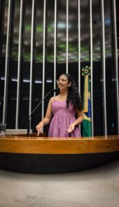 Entre os momentos mais marcantes da manhã, esteve a participação da estudante Clara Hadassah Guimarães Borges, de 11 anos. Aluna do Colégio Militar Dom Pedro II, Clara se tornou a primeira criança negra a discursar no plenário da Câmara Federal. Em seu pronunciamento, ela falou sobre igualdade, respeito e fé, inspirando a plateia com uma mensagem de esperança e coragem.