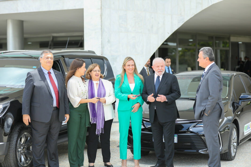 A governadora em exercício Celina Leão recebeu, na manhã desta quarta-feira (15), em solenidade no Palácio do Planalto, as viaturas doadas pelo governo federal que serão usadas nas Delegacias Especiais de Atendimentos à Mulher (Deam) para reforçar a estrutura de segurança a vítimas de violência e cumprir a Lei Maria da Penha.