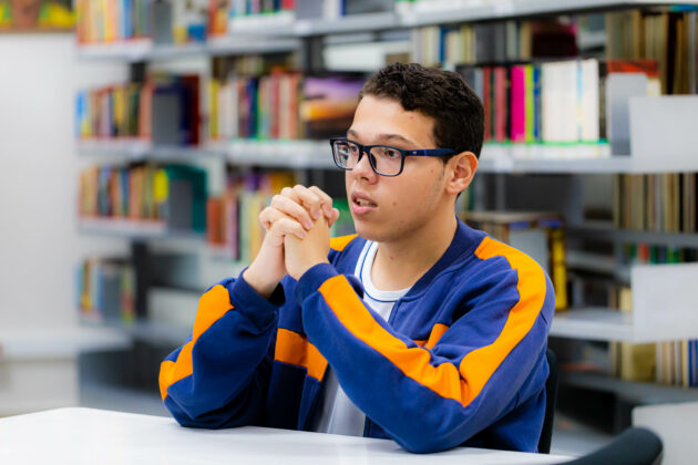 Ele conta como recebeu o apoio no Sesc-DF e o que isso representou na sua vida. “No início eu fiquei confuso com a mudança do ensino fundamental para o ensino médio. Mas me ajudaram muito nessa adaptação, minha mãe pediu para me colocarem de manhã e ajudaram ela nisso também. Respeitam o meu tempo”, conta Pedro.