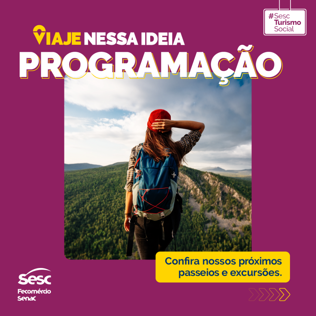 Caracterizado como Agência de Viagens e Turismo pelo CADASTUR do Ministério do Turismo, o SESC-DF visa atender sua clientela sempre proporcionando lazer e cultura com preços acessíveis. Os roteiros de viagens são sempre montados a partir de reuniões e baseados na procura e interesse dos clientes, e, para facilitar o pagamento das excursões. Acesse o menu de opções, localizado no lado direito da tela para consultar os pacotes turísticos.