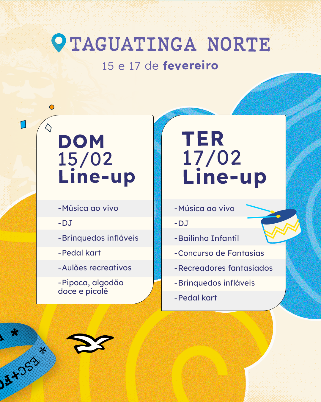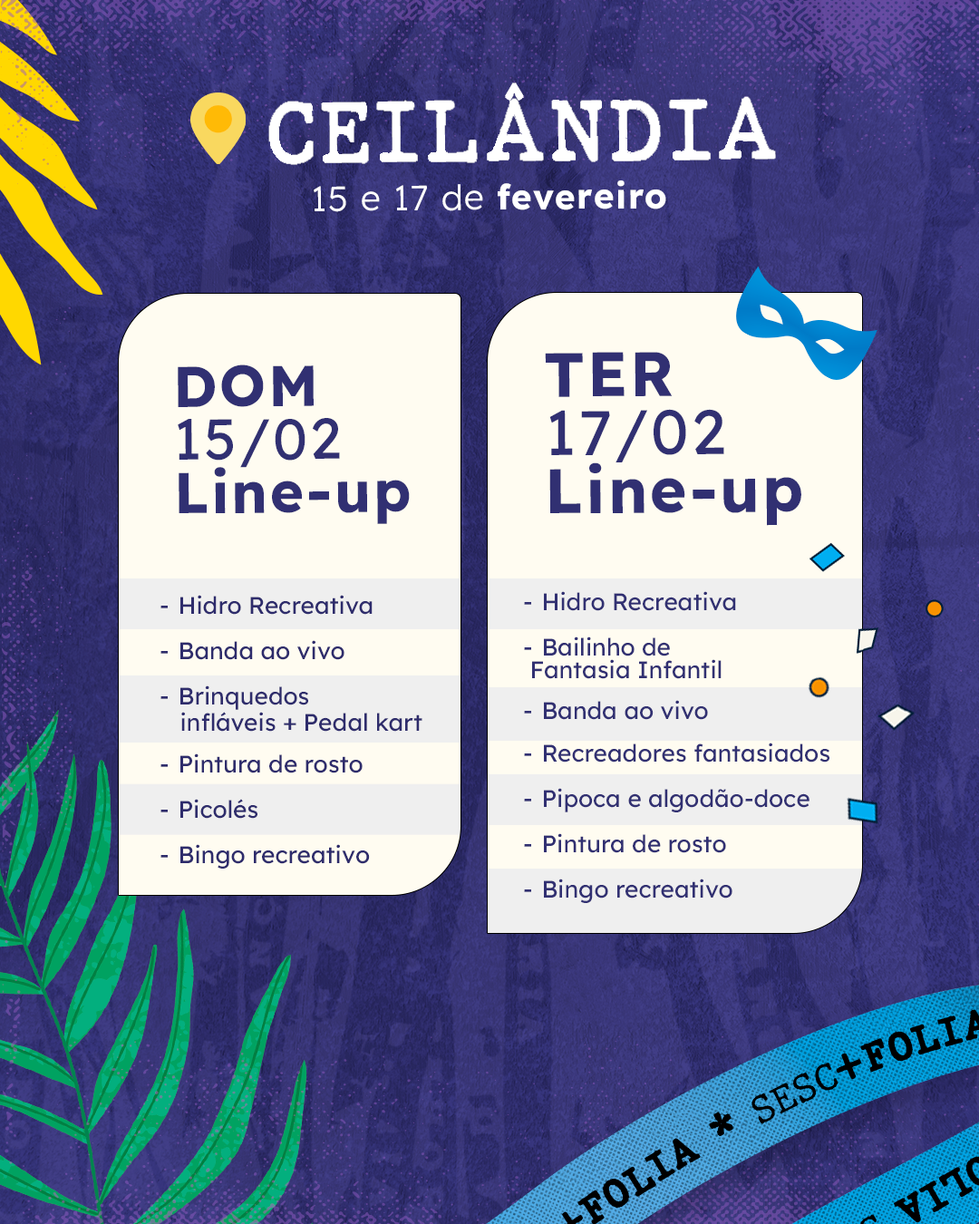 Com música ao vivo e lazer completo, unidades de Ceilândia, Gama, Guará e Taguatinga recebem famílias nos dias 15 e 17 de fevereiro. Confira como participar