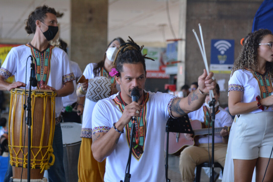 Quem passou pela rodoviária do Plano Piloto nesta quarta-feira (6) conseguiu assistir e se divertir com a apresentação do projeto Sesc na Rodô. Quinzenalmente, o Sesc-DF levará apresentações artísticas para o local com o objetivo de oferecer entretenimento de qualidade para o público passante, além de contribuir para a retomada do segmento cultural da cidade. A atração desta semana foi o grupo de percussão Instituto Folha Seca.